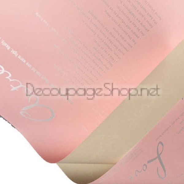 Корейска хартия - Целофан за опаковане - на пакет 20бр LB1 РОЗОВО/ЕКРЮ НАДПИСИ (58/58/17)