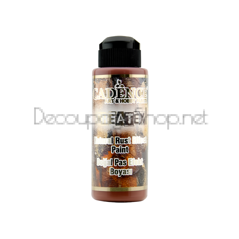 Боята Createx Natural Rust Effect е на водна основа и съдържа истински метални частици, които ще се окислят естествено с течение на времето и при излагане на атмосферни условия.