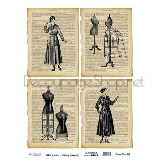 Декупажната хартия на "CADENCE" е с размери A4 - 21 х 29.7см, а теглото й е 20 гр./м².